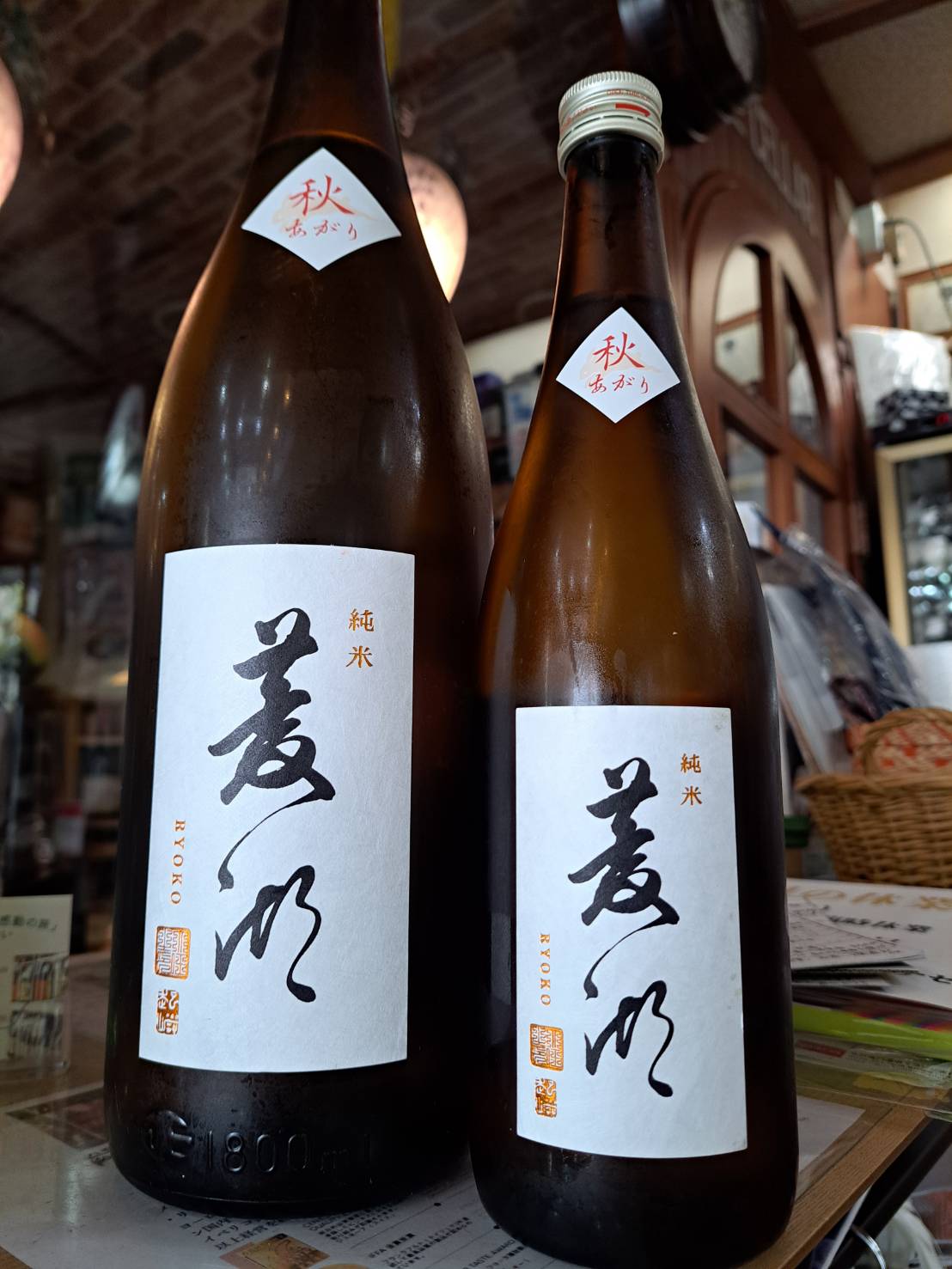 続いてご紹介するのは、当店で唯一の新潟県産酒、峰乃白梅酒造さんが造る『菱湖(りょうこ)』から届いた新商品『菱湖・純米・秋あがり』です!飲み易い秋のお酒を目指して、過度に熟し過ぎないように見守りながら、蔵元内の冷蔵庫(7度〜10度)でじっくり寝かした、蔵元こだわりの逸品です!新鮮な和梨や完熟バナナを思わせるフルーティで上品な香りが特徴です。蔵元曰く、柔らかな甘味の中にもキレのある酸味がバランスよく広がり、上品な果実の香りと芳醇な旨味が楽しめる酒質に仕上がっているそうです。滑らかな飲み口から、ついつい杯が進んでしまう事でしょう。