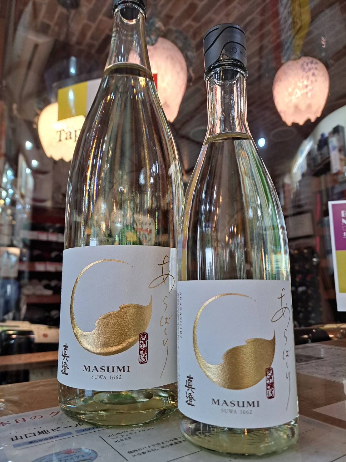それでは話を戻しまして今日は、諏訪の御柱祭りでも知られる長野県諏訪市にある真澄(宮坂醸造)さんから、冬の到来を告げるしぼりたて生原酒『真澄・純米吟醸あらばしり』と看板商品の黒ラベル『真澄・純米吟醸・辛口生一本生』が入荷してきたので早速ご紹介したいと思います。酒造りを行う冬季に限って出荷されるしぼりたての生原酒は、鮮烈で迫力ある躍動感溢れる味わいが持ち味です。寒さ厳しい信州の冬の味覚をお楽しみください。