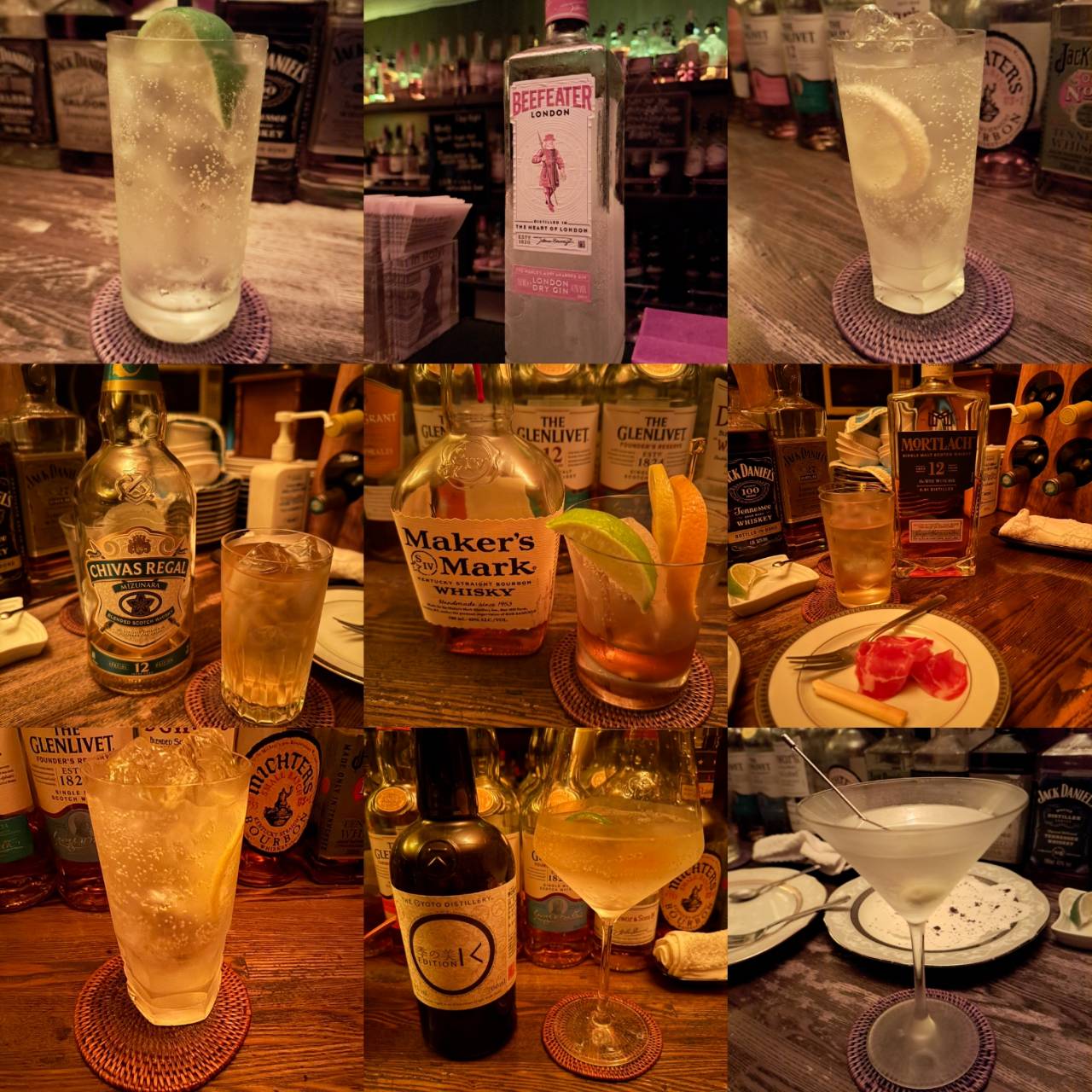 これらの料理に合わせたお酒たちは下記の通りです。バーテンダーの卓越した技術によって生み出されたお酒は、別次元の美味しさです。特に、ウイスキー水割りの旨さは格別です。ちなみに、こんな感じのお酒が飲みたいなぁ~、と相談すれば気軽に作ってくれますよ。それでは、飲んだ順番に駆け足でご紹介したいと思います。