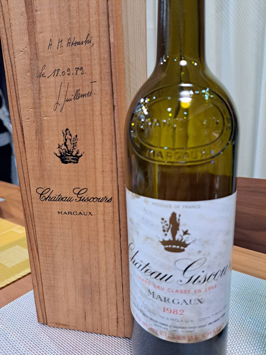 もう一つのワインは、今から約38年前私が若かりし頃、ワインの勉強でフランスに行った際に購入してきた『シャトー・ジスクール1982年(メドック格付け第3級)』です。ボルドーやブルゴーニュのワイナリーを廻り、シャトーに宿泊して勉強したのが、つい昨日のことのように思い出されます。